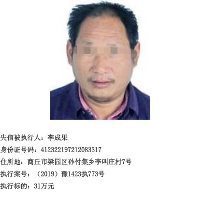 李成果拒不履行人民法院判决、裁定,宁陵县人民法院已将其列为失信被执行人,我院将不定期予以曝光。直至履行完毕为止。